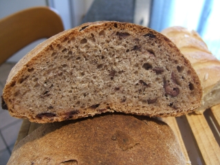 Avendo in previsione degli ospiti per il weekwnd “lungo” del 25 aprile, ho previsto di fare del pane in piu’, facendo tre impasti diversi di cui qui presento la versione “casalinga” del Pane di Lariano con le olive di Gaeta, che e’ un classico nei Castelli Romani.
