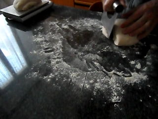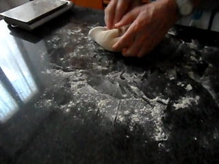 Lascio lievitare per altri 20 minuti ed effettuo una ulteriore doppia serie di pieghe a tre, dopo di che lascio lievitare per ancora 20 minuti, per un totale di un'ora. Dopo di che, aiutandomi con una bilancia, ho diviso in due parti l'impasto e fatto una preforma tonda. Anche di questa operazione esiste un video che mostra tutti i dettagli