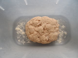 Impasto con la foglia fino a raccogliere tutta la farina, anche se ancora in molti grumi. Compatto a mano in una pagnottella irregolare che metto in una ciotola chiusa
