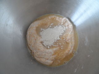 Passato questo tempo verso l'acqua con il lievito e la lecitina sulle farine in autolisi, l'orzo maltato e la Biga a pezzetti
