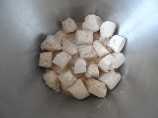 Lascio a temperatura ambiente, tipicamente 22 ºC, per 22 ore, quando è diventata così, e per usarla nell'impasto finale la taglio a pezzettini