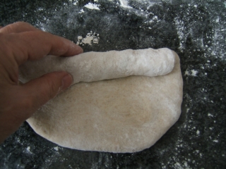 | Come ho avuto modo di dire nella mia presentazione delle Baguette, ed in particolare nell'Aggiornamento del 22/7/2009, ormai le baguette sono un tipo di pane fisso nella mia produzione settimanale. A queste associo poi degli altri tipi, con farine diverse, per fare pani con diverso sapore o con durata maggiore, magari anche solo per provare una nuova forma. Questa volta ho però voluto introdurre una piccola variazione anche nelle baguette, mettendo nell'impasto un poco di farina di Segale. Ho voluto incominciare con una piccola quantità, che rappresenta comunque il 20% delle farine usate, per vedere gli effetti. Che sono stati estremamente positivi. Presento quindi questa ricetta, che i lettori più affezionati riconosceranno essere una sostituzione di una versione precedente che aveva delle "mancanze" dal punto di vista della documentazione fotografica, essendo solo una prova. Questa è una ricetta ormai pienamente verificata. La Biga iniziale: 200 gr farina manitoba impasto velocemente, formo una palla che ricopro con pellicola trasparente, come al solito