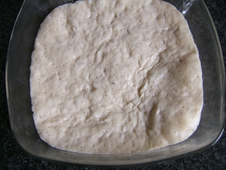 Metto lĠimpasto in una ciotola e copro con la pellicola, lasciando lievitare per unĠora e mezza. Al termine eĠ cosiĠ: