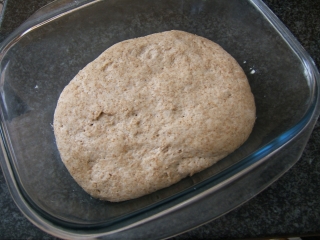 Metto la ciotola in frigorifero per la notte. Al mattino la metto nel forno freddo con la luce accesa. La pellicola fa un discreto effetto serra, e quindi la temperatura dell'impasto arriva velocemente a qualche grado in più della temperatura ambiente, che è di 22ºC. Lascio nel forno per 7 ore, quando è diventata così