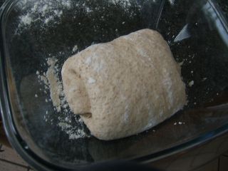 | Come ho detto nella pagina di presentazione e come ho illustrato nella pagina sulla Preparazione del Pane, ho da poco ricominciato qualche sperimentazione, in particolare aumentando un po' l'idratazione dell'impasto e introducendo il folding, o ripiegatura, nella seconda fase di lievitazione, con la necessità di rivedere anche tutti i vari tempi e la quantità di lievito. Non penso di essere ancora riuscito ad ottimizzare il tutto, ma qualche risultato positivo credo di averlo ottenuto, e quindi ho deciso di presentare l'evoluzione del pane che sto ottenendo, perchè è anche un ottimo modo per capire gli effetti di piccoli cambiamenti. Per avere un confronto più immediato, ho rifatto i Panini Semintegrali al Kamut®, che era l'ultima ricetta presentata. Dopo qualche prova per aggiustare i tempi e le dosi di acqua, ho ottenuto un risultato con degli aspetti positivi, la cui esecuzione presento in dettaglio, ma solo per questa prima volta. Inizio come al solito dalla Biga preparata la sera prima, ma con una maggiore quantità di acqua: 200 gr di farina Manitoba Impasto velocemente fino a formare una palla morbida che metto in una ciotola coperta da pellicola trasparente