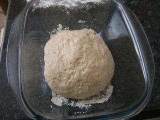| Come ho detto altre volte su queste pagine, il formato dei panini, una pezzatura tra i 150 e i 200 grammi, è quello che mi pone più difficoltà nell'ottenere un prodotto soddisfacente. E' anche possibile che sia io a pretendere qualcosa che con le tecniche che uso non è ottenibile, ma poichè è anche una dimensione molto comoda, ogni tanto riprovo a farne una qualche versione. Questa volta ho fatto dei panini con un impasto piuttosto semplice che ho usato per forme più grosse con risultati apprezzabili, con un poco di farina integrale e di farina di Kamut® aggiunte alla solita base di manitoba e farina 0. Quello che ho ottenuto non mi ha certo risolto il problema dei panini, ma credo che meriti di essere presentato. Inizio come sempre la sera prima preparando la biga: 200 gr di farina Manitoba Sciolgo il lievito nell'acqua e la aggiungo poco a poco alla farina nell'impastatrice. Quando si è formato l'impasto ne faccio una palla omogenea che metto in una ciotola coperta da pellicola trasparente.