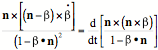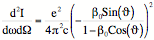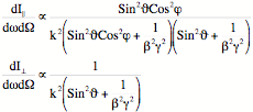 Nella (8) q eĠ lĠangolo tra la direzione della radiazione e quella di b, si eĠ inoltre mantenuto il segno meno allĠinterno della parentesi per indicare che si tratta di una ÒampiezzaÓ derivante da unĠaccelerazione negativa. Infatti la stessa identica distribuzione di radiazione si avrebbe nel caso di una carica che apparisse improvvisamente dal nulla con una velocitaĠ b0.